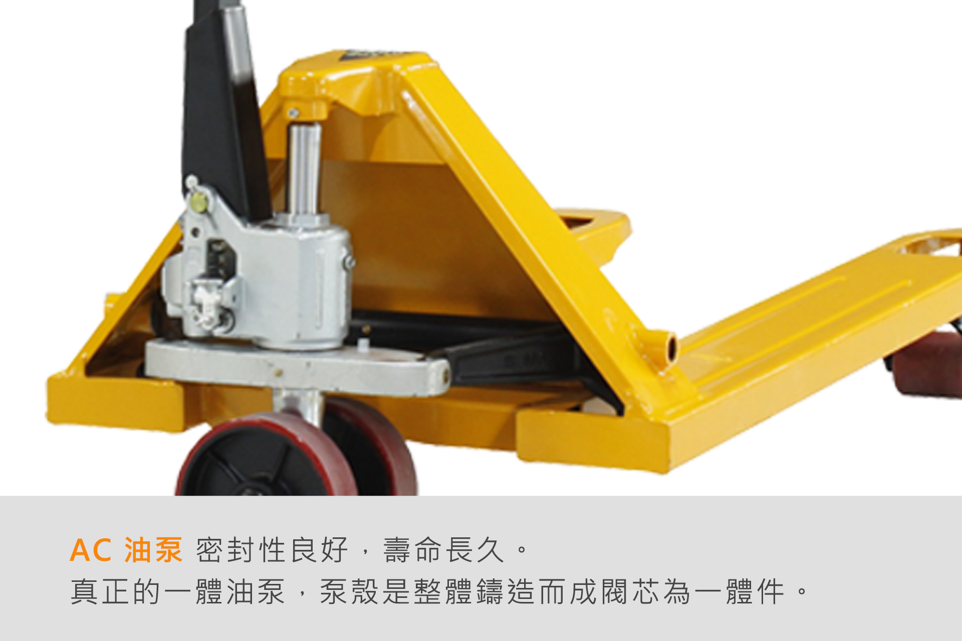 ■優質鋼板打造,所有油壓拖板車貨叉背面均有加強補強,保證車體的強度,表面靜電噴塑,抗磨損。