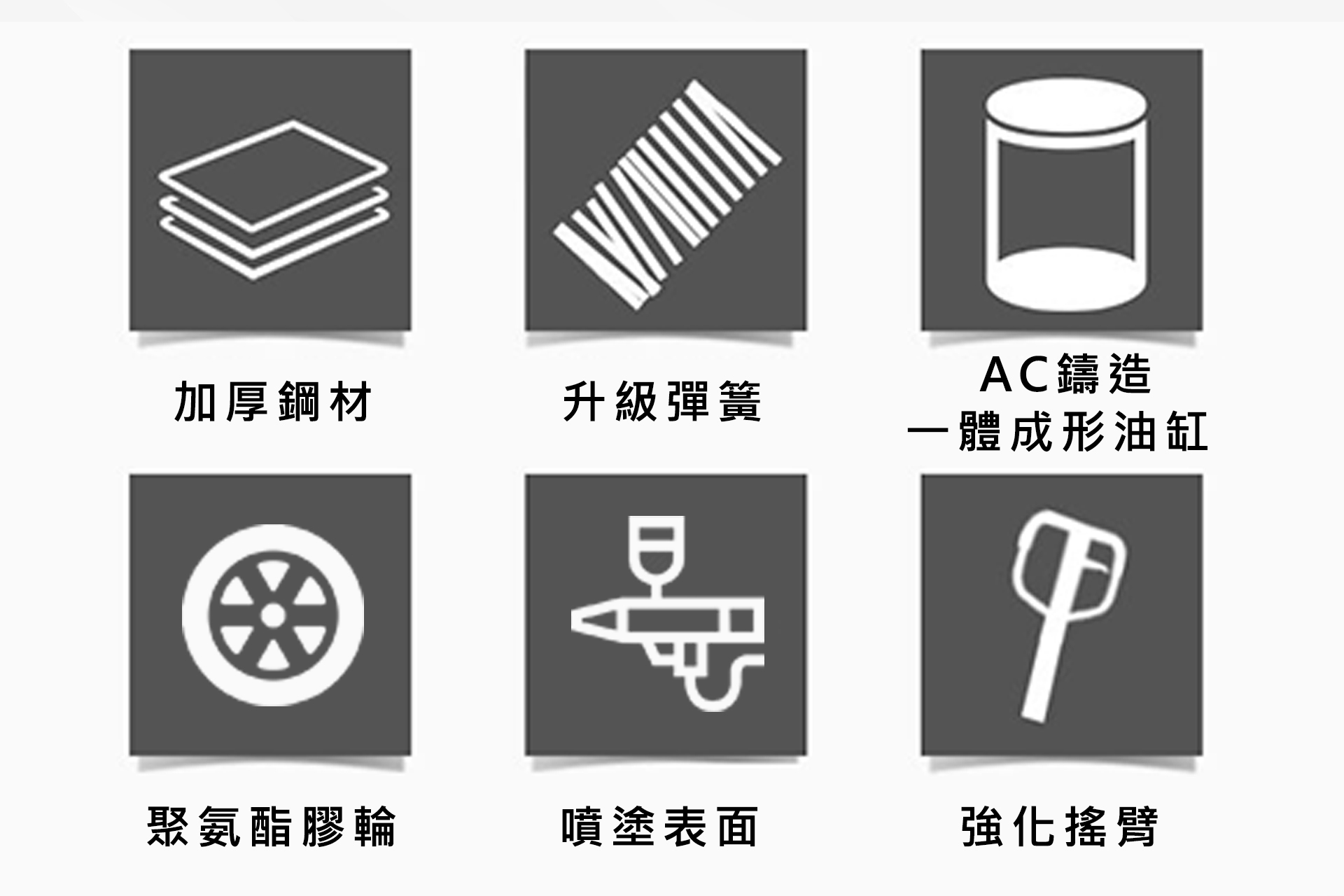 ■油壓系統採用獨特的油路及結構,使油壓泵浦更加強韌、耐用。