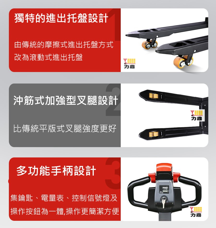 ● 貨叉高度標配80mm,增加導向裝置,進出棧板更方便(包括封閉棧板)。